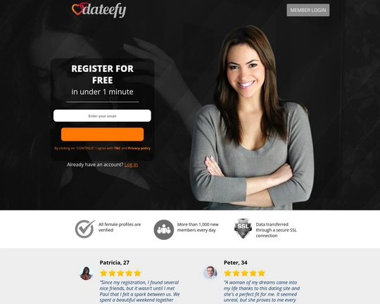 Like many dating site options, this is a well-presented platform that loads quickly and involves a relatively short sign-up process. After verifying your profile via email with Dateefy , you're inside and looking at pages and pages of people just like you - looking for fun and romance.